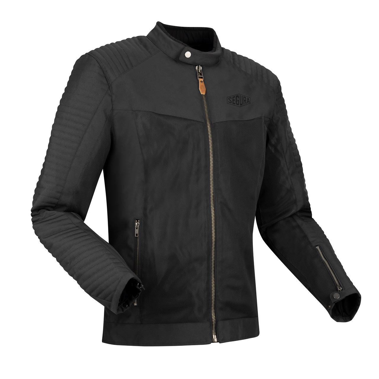 O blusão DIKINSON da SEGURA, com corte Body Fit, oferece conforto e ajuste perfeito. Fabricado em Fibretech 600D e Hard Mesh de fibras recicladas, garante resistência e ventilação. Inclui proteções CE ALPHA amovíveis nos ombros e cotovelos (EN1621-1 Nível 1) e bolso para proteção dorsal. Possui ajustes nos punhos e ancas, gola subida e múltiplos bolsos. Com design urbano, costuras matelassê e detalhes sofisticados, está disponível em Preto, Castanho e Preto/Vermelho